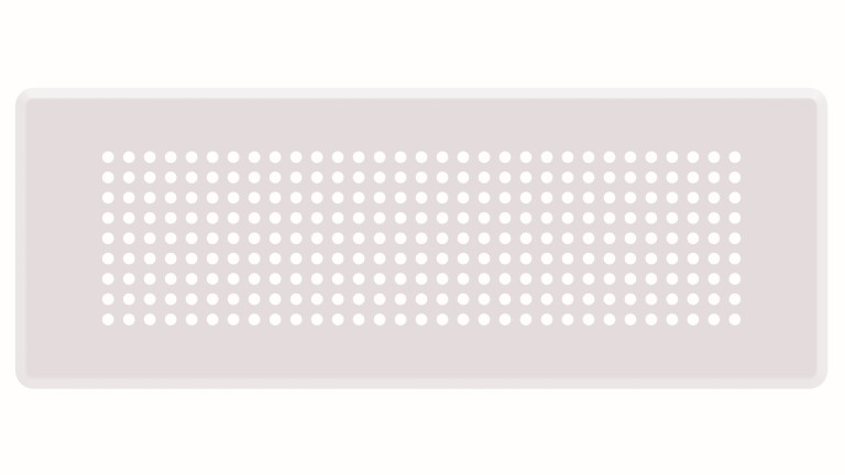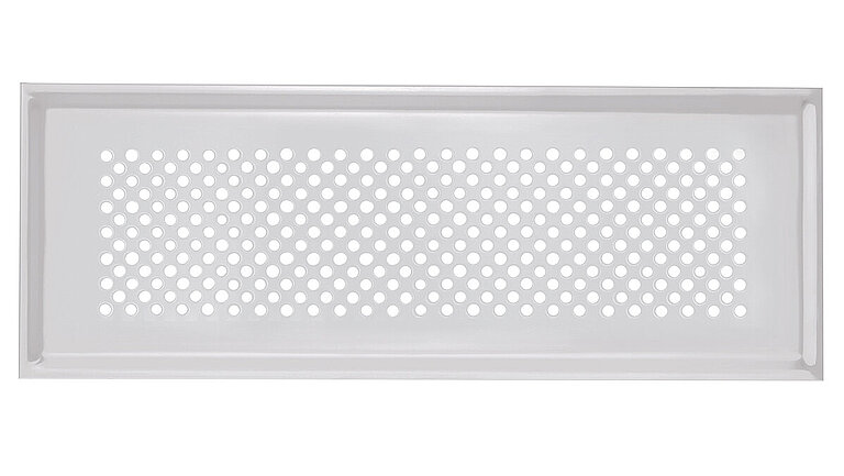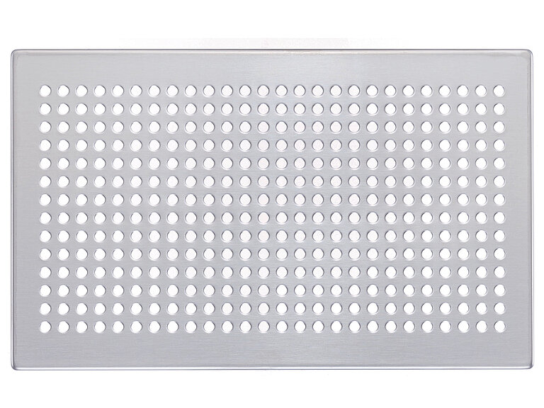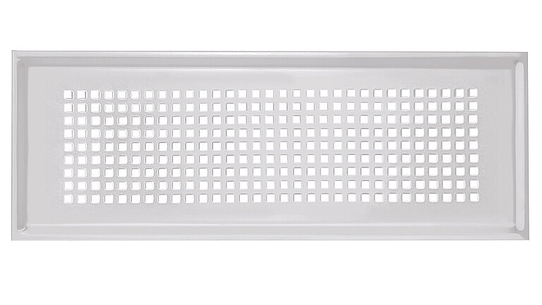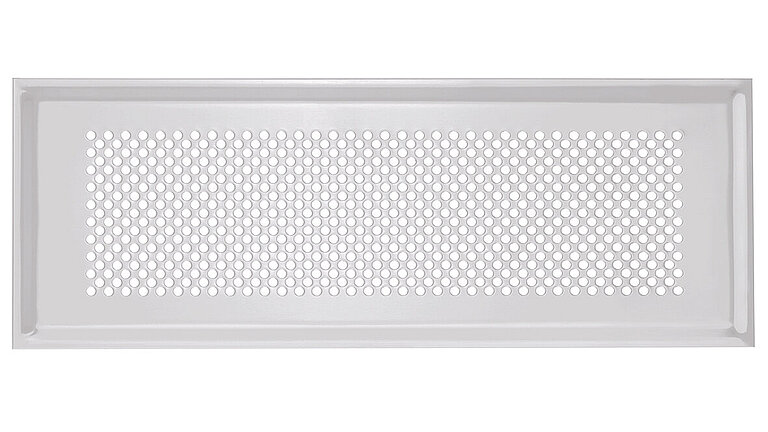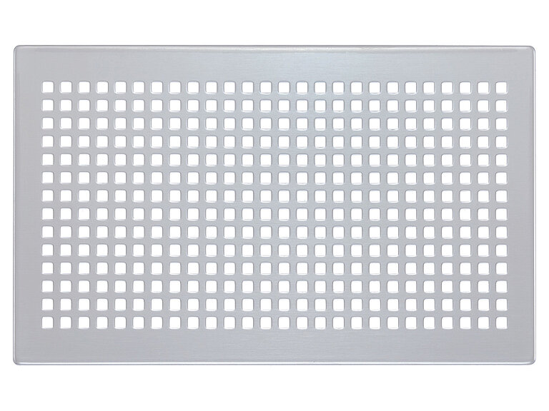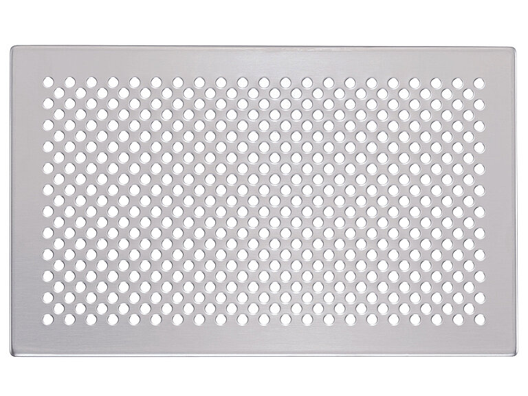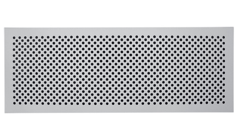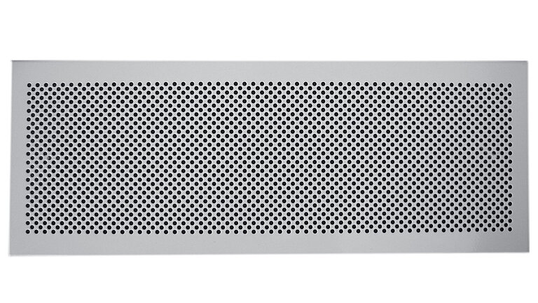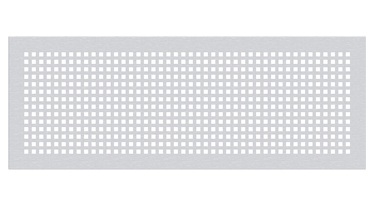 Designové mřížky jsou k dispozici v bílé barvě a nerezové oceli, v různých formátech (hranaté a kulaté) a s různými vzory otvorů (od jednoduchých po neobvyklé).
