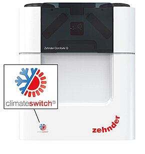 S Climate Switch® od společnosti Zehnder vaše větrací jednotka automaticky dodává čerstvý vzduch v každé roční době a stará se tak o stabilní vnitřní klima vysoké kvality, a to navíc energeticky účinným způsobem.