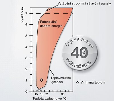 Při vytápění stropními sálavými panely je teplota vzduchu v místnosti nižší než v případě konvekčního teplovzdušného systému vytápění, ale vnímaná teplota je stejná.